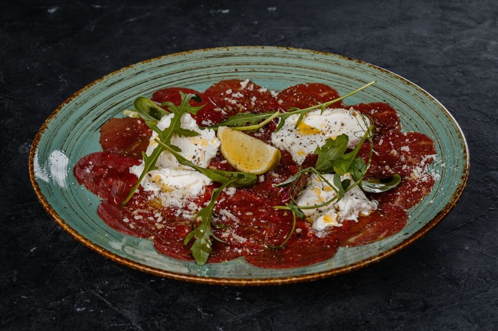 Карпаччо из говядины с песто бьянко