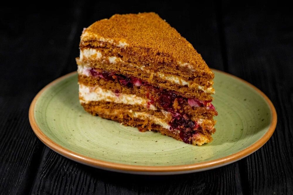Торт «Медовик» с клюквой