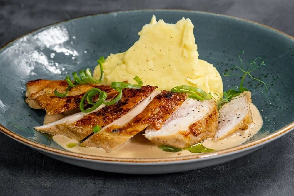 Куриная грудка с картофельным пюре и трюфельным соусом