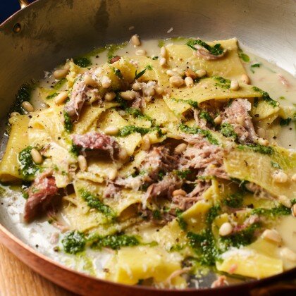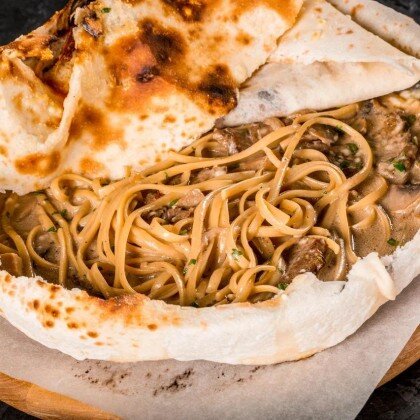 Казарече с рваной говядиной, сыром страчателла и ароматом белого трюфеля