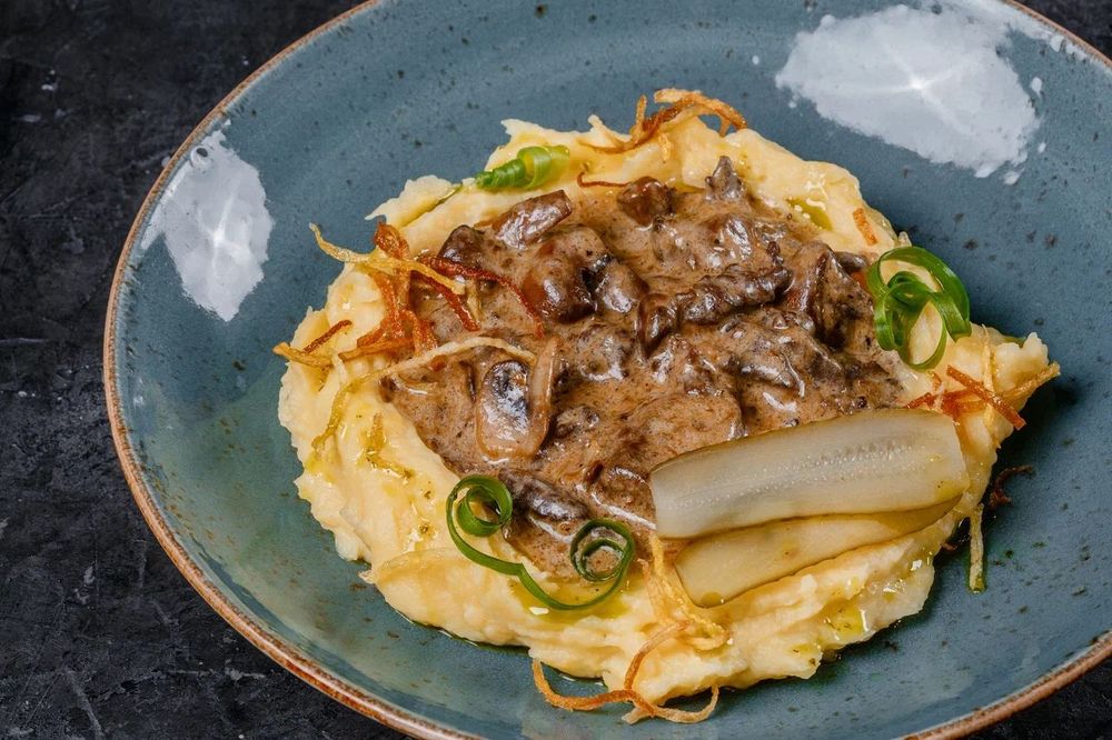 Бефстроганов с картофельным пюре