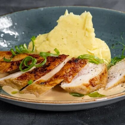 Куриная грудка с картофельным пюре и трюфельным соусом